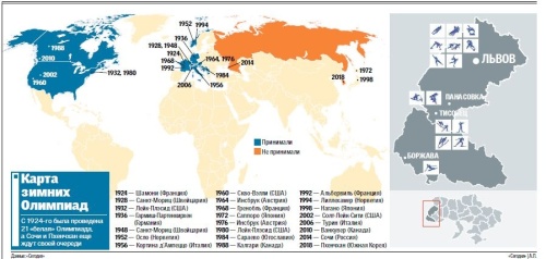 Спортивные соревнования местные власти предлагают проводить в самой столице Галичины - селах Тисовец и Панасовка Львовской области, Боржава на Закарпатье. В Тисовце - прыжки с трамплина, двоеборье, лыжные гонки и биатлон, в Панасовке - фристайл и сноуборд, в Боржаве - горнолыжный спорт. В самом Львове будет находиться ледовая арена, а также трассы для бобслея, санного спорта и скелетона.