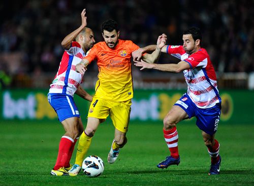 16 февраля 2013. Фабрегас в борьбе за мяч. Гранада-Барселона