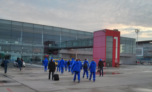 В 12:40 стало окончательно понятно, что этот борт сегодня никуда не полетит. В это время команда покинула самолет, журналисты же провели в креслах еще почти два часа. Затем работников пера и микрофона автобусом перевезли на такой же лайнер компании Windrose, куда вскоре была доставлена и команда. Что же заставило клуб в спешке поменять один самолет на другой?