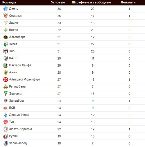 16:40 - Интересная статистика по стандартам команд-участниц группового этапа Лиги Европы. Днепр - уверенный лидер!