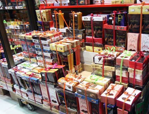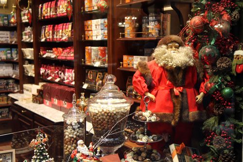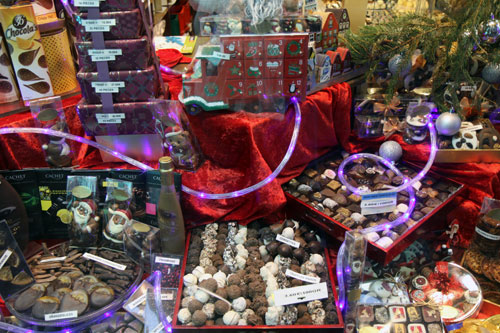А вокруг – магазины и магазинчики, в которых горы шоколада на любой вкус. Шоколад – настоящее «черное золото» Бельгии. Именно эта страна считается родиной пралине, бельгийский шоколад широко известен во всем мире. Некоторым производящим его фирмам уже более ста лет. Качество – высочайшее, вкус – отменный. Украшенные к Рождеству прилавки – великолепны. Повсеместно продаются также бельгийские вафли.