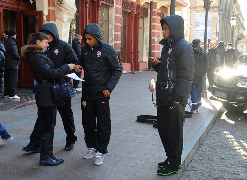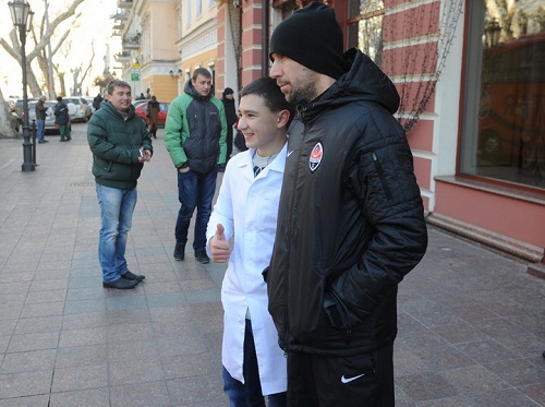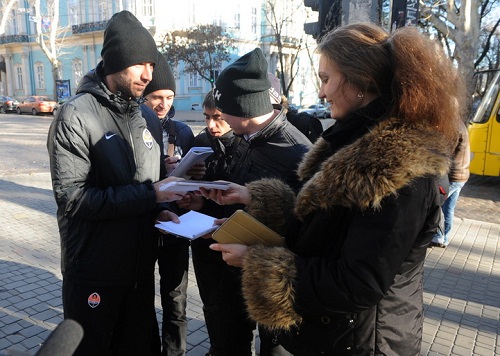Футболисты донецкого клуба фотографировались с желающими и раздавали автографы