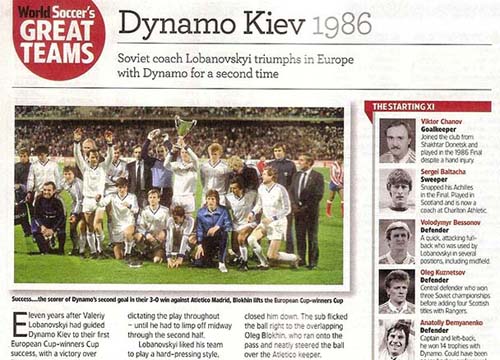 Влиятельнейший в мире футбола английский журнал World Soccer в своем ноябрьском выпуске в традиционной рубрике «Великие клубы» разместил обширный материал, посвященный великой команде киевского «Динамо» образца 1986 года.