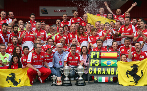 Як може оцінюватися сезон командою, яка визнає тільки перемогу – звісно ж як невдалий. «Червоні» добре підготувалися до старту чемпіонату, а найголовніше – не мали якихось істотних проблем з шинами зразка 2013-го. Все починалося цілком непогано, адже поки в стані Red Bull влаштовували публічні істерики на тему шин, які не дозволяють їх машині розкривати всі 100% потенціалу, Фернандо і Феліпе в цілому непогано запрягали, хоча і тут не обійшлося без проблем, при чому придуманих самою командою – схід Алонсо на другому колі в Малайзії став яскравою ілюстрацією на тему «не бійся, ми сто разів так робили – прокотить». В Сепангу не прокотило, хоча цей схід іспанця залишився єдиним до кінця сезону.