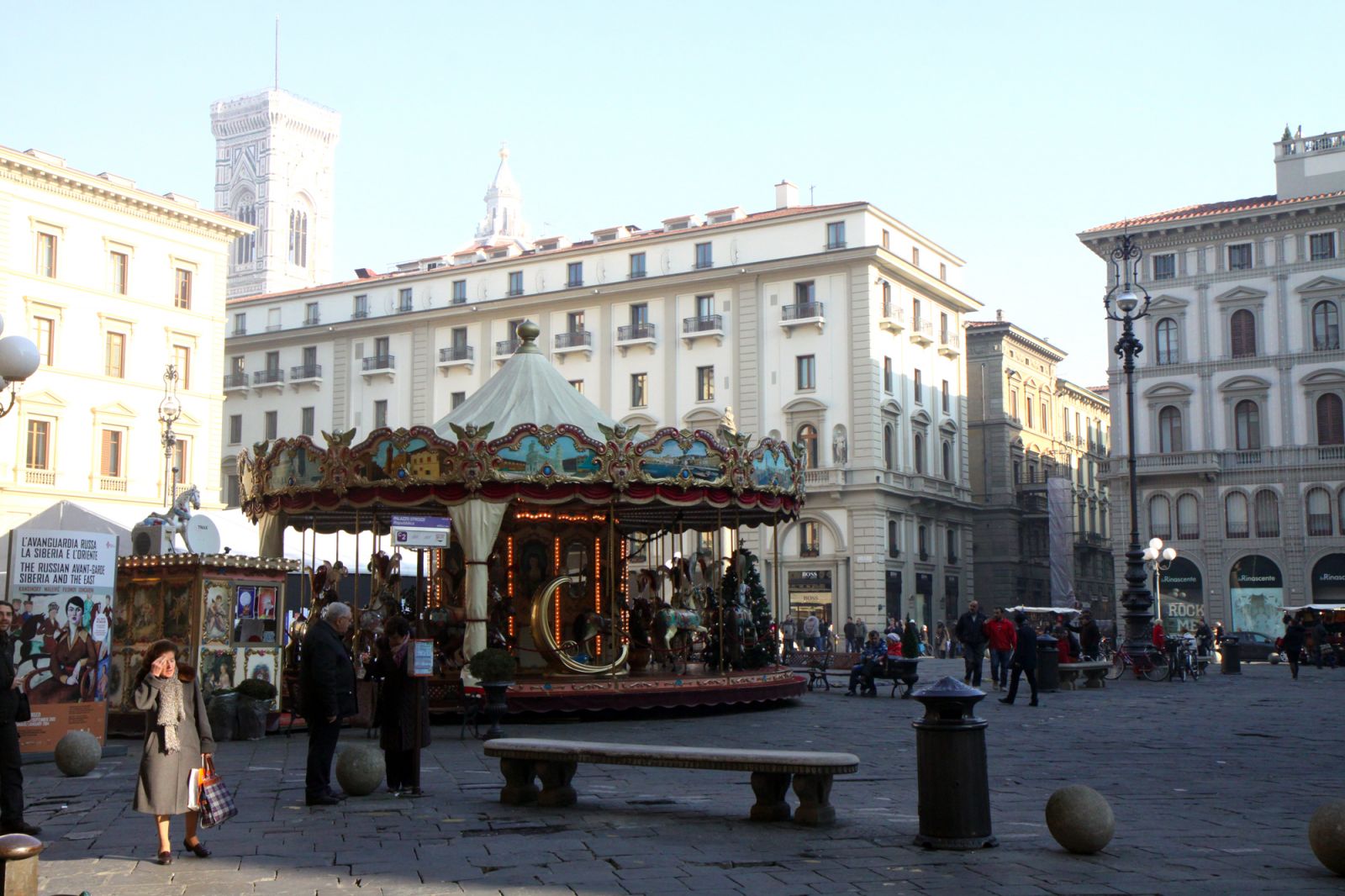 Но давайте поговорим немного о самом городе, который оставил неизгладимые впечатления на вашего покорного слугу. Признаться честно, в Италии бывал уже около 10-ти раз, но никогда не доводилось побывать во Флоренции, хотя часто слышал о ней много восхитительных отзывов. Хотя маршрут наш лежал через Пизу, но даже на подъезде с окна автобуса видно, что этот город – один из исторических центров Италии. По итальянским меркам чистый, ухоженный, с большим количеством памяток архитектуры, основная масса которых собрана в самом сердце Флоренции, на площади Сан Лоренцо. Здесь находится и главная достопримечательность города, такая популярная во всех городах Италии Дуомо.