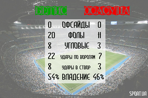 В общем-то «Реал» не прилагал каких-то невероятных усилий, чтобы забить, методично подбираясь к воротам соперника и создавая опасность у владений Касильи. Немного неприятно удивил Роналду, который явно провел не лучший свой матч. Ничего фатального. Просто блеклая игра, нереализованные моменты, в общем, все то, что обычно антонимично имени Криштиану, в этом матче его сопутствовало. Забить единственный гол в матче удалось Пепе на 55-й минуте.