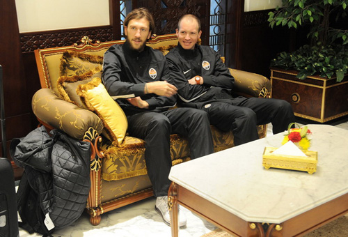 В Абу-Даби сейчас комфортная температура, +20 градусов. В VIP-зале аэропорта всех ждали прохладительные напитки и традиционная процедура сканирования сетчатки глаза. После этого футболисты и тренерский штаб погрузились в автобус и отправились в отель.