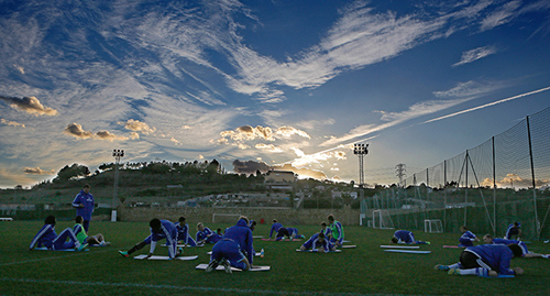 Накопившая за последние две недели тренировок усталость снимается словно рукой, когда игроки вновь выходят на футбольное поле и потихоньку начинают разбирать заранее выложенные заботливыми администраторами два десятка футбольных мячей. Одни организовывают «квадрат», другие набивают или перепасовываются.