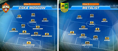 С игрой нынешнего соперника харьковского «Металлиста», московских армейцев, знакомы многие любители футбола Украины. В российской Премьер-лиге этот клуб в последнее время постоянно был на ведущих ролях, хотя заметно сдал накануне середины сезона. Выступление же армейцев в Лиге чемпионов некоторые обозреватели и вовсе рассматривают как провальное. В то же время эта команда достаточно знакома многим украинским болельщикам, которые, так или иначе, могли наблюдать ее на поле. Известно, что подопечные Леонида Слуцкого, как и «Металлист», долгие годы являются приверженцами тактической схемы 4-2-3-1. Поэтому в преддверии стартового поединка Объединенного Суперкубка можно было смело надеяться увидеть в игре команд много схожего. Различия же и победитель должны были определиться успехом реализации такого тактического построения, а также (как это часто бывает в игре равных по классу команд) надежностью игры в обороне.