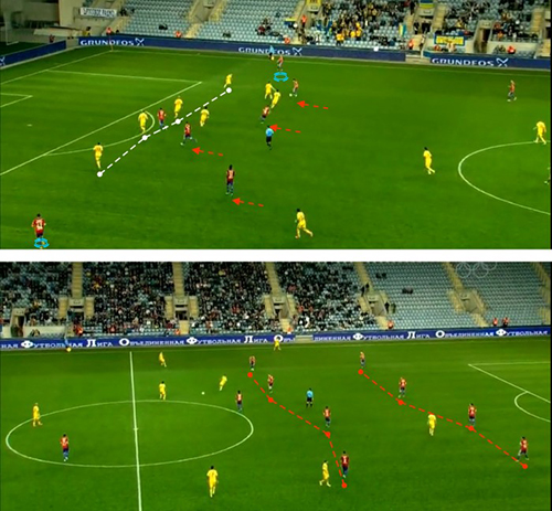 В то же время подопечные Слуцкого продемонстрировали хорошо поставленную игру через вертикальные передачи шведской двойки Вернблум-Эльм, которая является одной из самых характерных черт их атак. Об этом можно говорить как о центральной оси игрового рисунка Слуцкого, которую он построил с практически одновременным появлением обоих скандинавов в команде. И хотя считается, что Вернблум является более жестким игроком, нацеленным на борьбу и разрушение, а Эльм – тяготеет к креативу, оба футболиста на сегодня выполняли довольно схожий объем работ. Это касалось как обороны, так и поддержки атак длинным пасом из глубины.