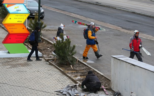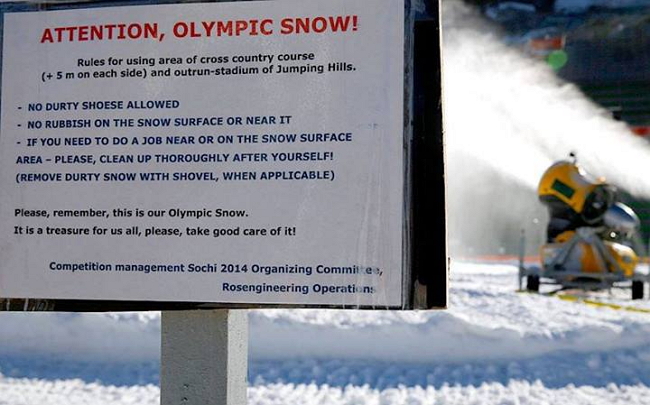 ===Субтропики - «рай» для лыжников. Снега завались, еще и ремонт под ногами===Вообще-то ВСЕ лыжные соревнования проводятся В ГОРАХ, а фото сделано в городе Сочи. Никто ж не страдает, что финал Кубка Стэнли в НХЛ играют в июне?