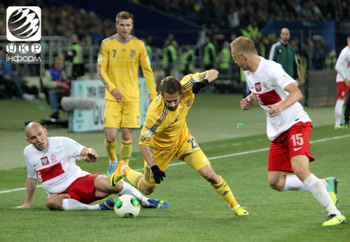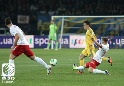 На фото - победный для нашей сборной матч отборочного цикла чемпионата мира по футболу со сборной Польши в Харькове на стадионе ОСК «Металлист» 11 октября 2013 года. Украина - Польша 1:0