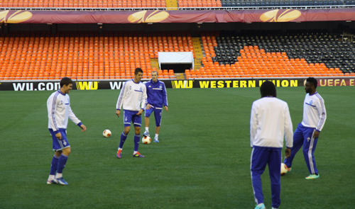 Накануне ответного матча Лиги Европы против испанской «Валенсии» футболисты киевского «Динамо» провели традиционную открытую тренировку.