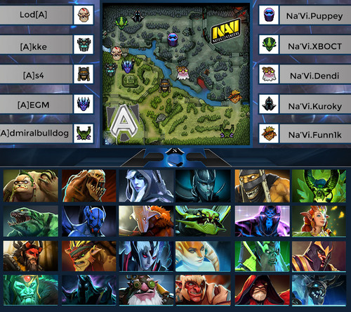 Баны Na`Vi: Naga Siren, Night Stalker. Баны Alliance: Pudge, Enchantress.