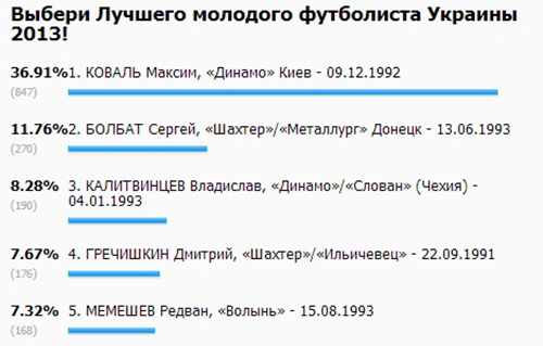 На этот раз гонка претендентов на звание Лучшего молодого футболиста Украины 2013 получилась бескомпромиссной и непредсказуемой, и лишь в ее концовке лидерство удалось завоевать 20-летнему донецкому таланту, который своей игрой заставил говорить о себе всю Украину!