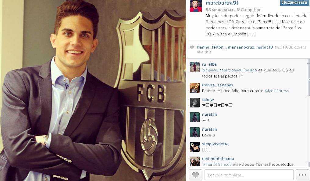 «Я очень рад защищать цвета «Барселоны» до 2017-го года! Вперед Барса!»