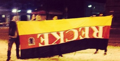 Фанаты российского клуба сожгли баннер «Боруссии», выполненный в форме немецкого флага.