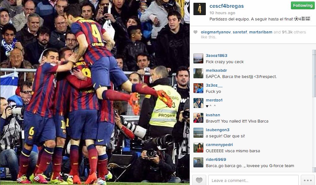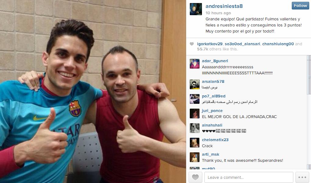 «Вперееед! Величайшая победа на «Сантьяго Бернабеу». И я с великим @andresiniesta8. Давай Барселона!», - к общему веселью добавился и Марк Бартра.