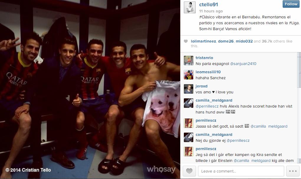 Ну, а Кристиан Тельо выкладывает фото из раздевалки и поздравляет партнеров: «Ярчайшая победа на «Бернабеу». Мы вели игру и теперь приблизились к своим соперникам в Ла Лиге. Давайте вперед!»
