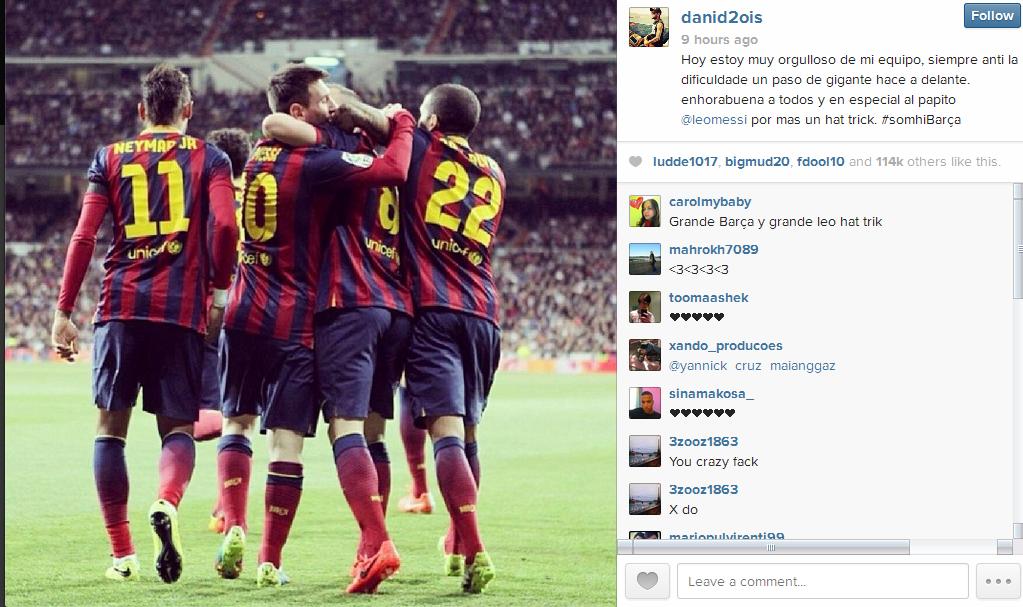 Vamooooooos!!! Qué gran victoria en el Bernabeu!!! Con el mas grande!!! @andresiniesta8 #ForçaBarça ! Visca el Barça! pic.twitter.com/wgvafAJ6on