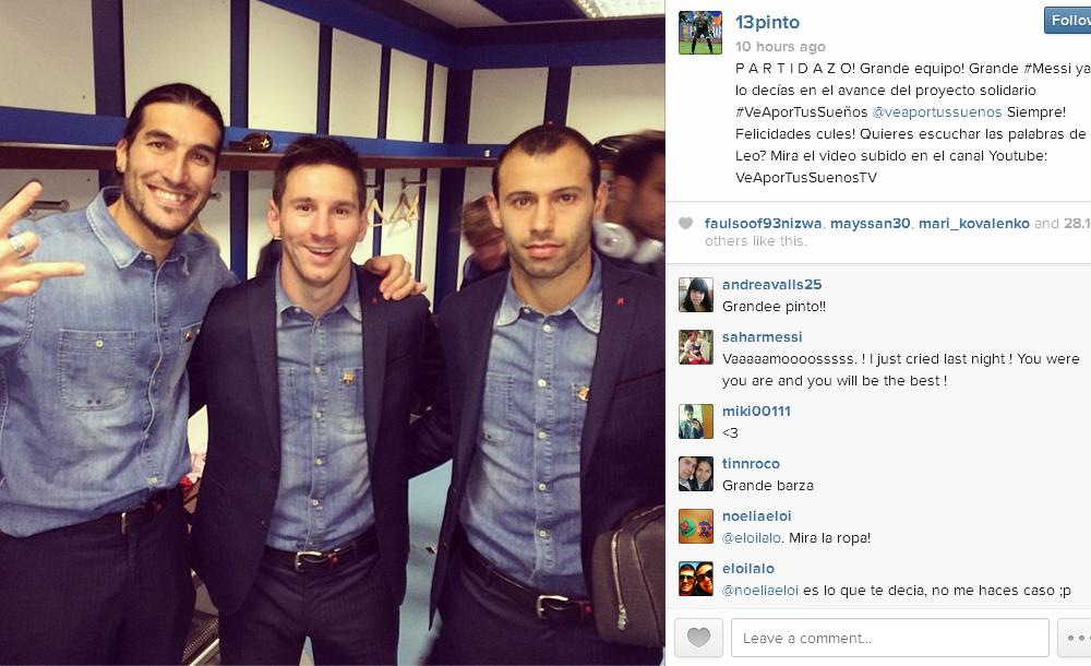«Великая команда! Великий Месси!», - написал вратарь «Барсы» Пинто.