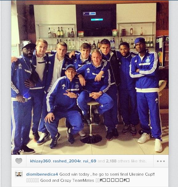 Полузащитник киевского «Динамо» Мигел поздравил команду с выходом в полуфинал Кубка Украины и выложил на своей странице в Instargam фото с партнерами: