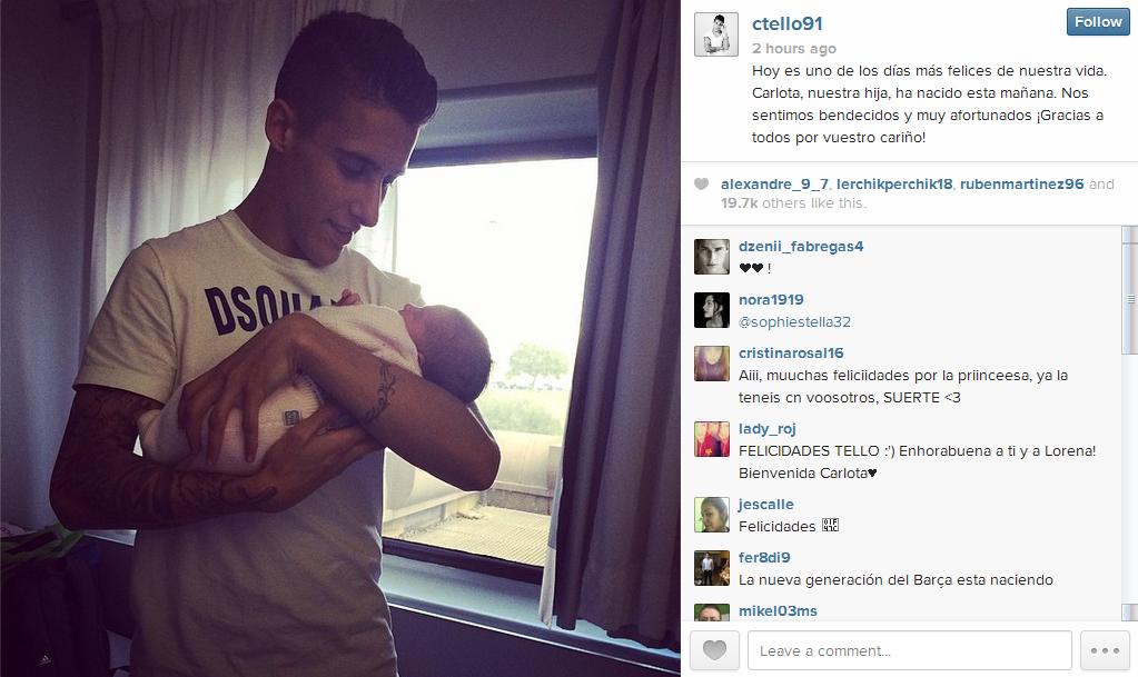 Полузащитник «Барселоны» Кристиан Тельо впервые стал отцом. Его жена Лорена сегодня утром родила девочку. Ради того, чтобы присутствовать на родах футболисту пришлось пропустить тренировку.