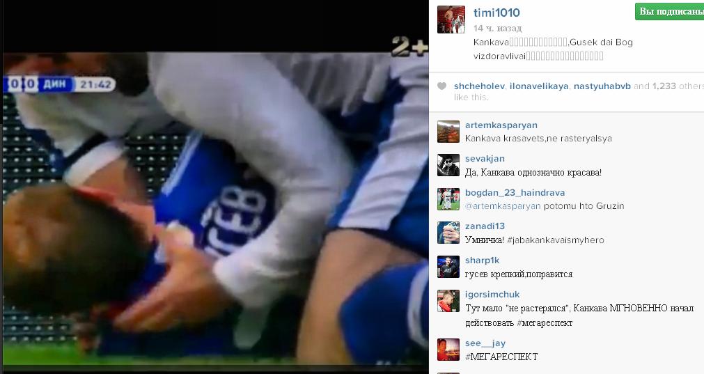 Экс-нападающий киевского «Динамо» через свою страницу в Instagram пожелал скорейшего выздоровления своему бывшему партнеру по клубу и сборной Олегу Гусеву, который получил травму в матче с «Днепром», и поблагодарил за помощь другу Джабу Канкаву: