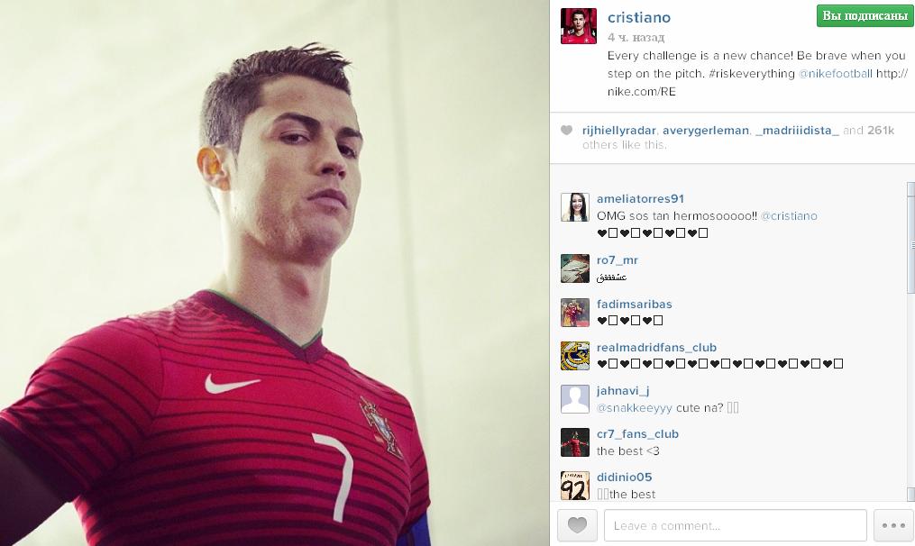 Nike запускает первую часть кампании #riskeverything, приуроченную к Чемпионату мира по футболу 2014. Старт этой кампании ознаменовался выпуском видеоролика с участием Криштиану Роналду, Неймара и Уэйна Руни.