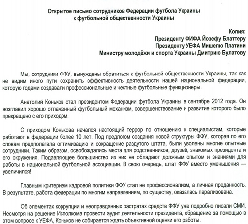 Сотрудники федерации написали письмо Платини и Блаттеру