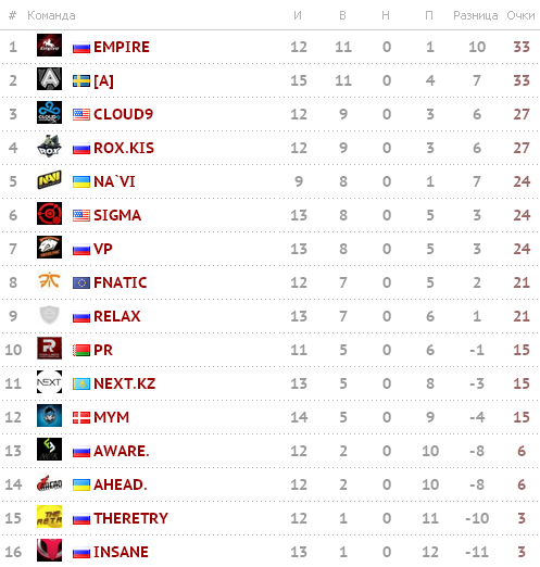 Три победы Natus Vincere быстро подымают украинскую команду на пятое место в таблице. Если учесть, что у ТфёМш имеется большой запас игр, то в скором времени мы можем увидеть их уже в первой четверке.