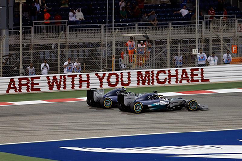 Ніко пішов в атаку одразу ж – Льюіс її відбив. В цей час Падді Лоу обох пілотів настійно попередив про необхідність доїхати до фінішу обома машинами, при цьому жодних вказівок щодо можливості чи неможливості боротьби він не давав. Пілоти були вільні у праві боротися один з одним за перемогу, але повинні були це робити з максимально холодною головою, аби таки привезти другий переможний дубль за два тижні.