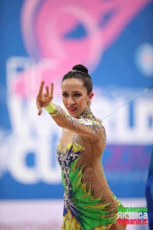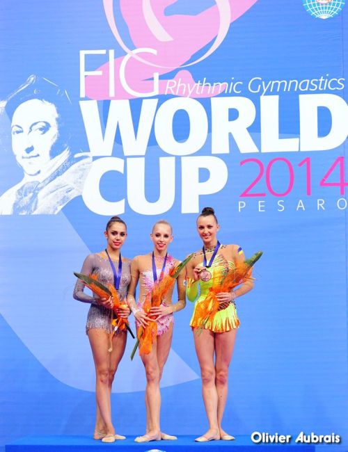 На прошлых выходных праздник гимнастики посетил итальянский город Пезаро. Наконец, после непродолжительного перерыва, в строй вернулась Анна Ризатдинова. Лидер украинской команды пока выступила не совсем ровно: на ее счету три третьих места – многоборье и два ее лучших вида (обруч, лента). В финале с мячом Аня стала только седьмой, а в финал с булавами не квалифицировалась вовсе.