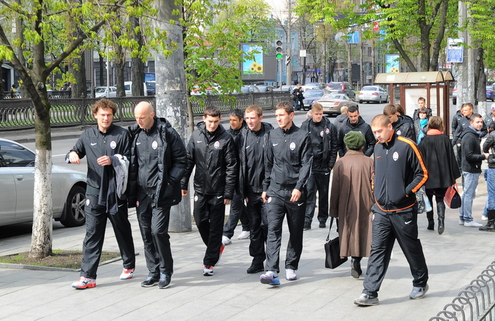 За несколько часов до начала матча «Динамо» – «Шахтер» донецкие футболисты побывали на традиционной прогулке. На этот раз променад совершали по Киеву. Настроение у игроков боевое – впереди ответственная игра чемпионата Украины. Напомним, поединок начнется в 20:00 на НСК «Олимпийский».
