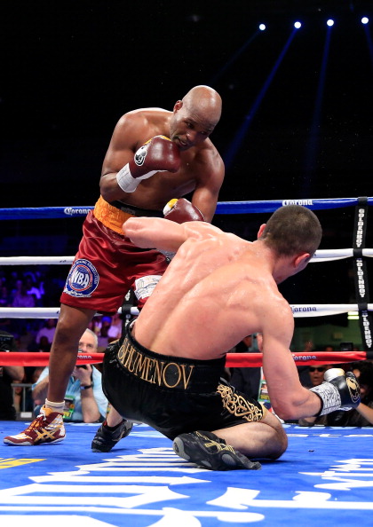 Бернард Хопкинс (55-6-2, 32 KOs) сумел победить Бейбута Шуменова (14-2, 9 KOs) и объединить титулы в 49 лет – это его очередной рекорд. К своему поясу IBF в полутяжелом весе Би-Хоп добавил WBA казахстанца. Превосходство Хопкинса в опыте и понимании бокса было огромным, это понимали до боя и это было очевидным в ринге. Шуменов сумел выиграть первые два раунда, но это просто Бернард присматривался и давал сопернику проявить себя. Дальше бой проходил под полным контролем опытного американца.