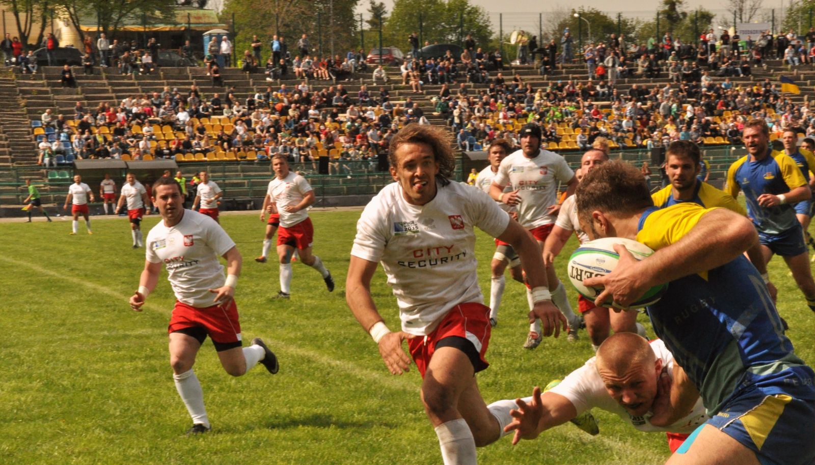 Після перерви ситуація кардинально не змінилася. Збірна України продовжувала контролювати гру, особливо нікуди не поспішаючи. Але як і на початку зустрічі, першими у другій 40-хвилинці відзначилися саме гості. Вони втретє вдало реалізували карний удар (цього разу його виконував Томаш Гасік) і скоротили різницю в рахунку до -6. Відповідь українців була моментальною: спочатку гравець одеського «КРЕДО-1963» Павло Масюков виконав спробу, а тоді його одноклубник Микола Делієргієв її реалізував. Рахунок на табло став 22:9 і навіть незважаючи на те, що грати залишалося ще більше двадцяти хвилин, сумнівів у перемозі не було. Не залишилися в боргу і наші гості, зусиллями Матеуша Бартошека, вони виконали першу в цьому матчі спробу, а також реалізували її, знову скоротивши різницю до шести очок. Чим менше часу залишалося до фінального свистка, тим більш відкритою ставала гра. Спершу збірна України зробила ще одну спробу і реалізувала її, набравши ще сім балів. Згодом поляки вдруге внесли м’яч в нашу зону (зробив це Лукаш Шостек), але реалізувати свою спробу не змогли, тож набрали тільки п’ять очок. І хоч рахунок став 29:21, здавалося, що українці все контролюють. Поляки перейшли в наступ, але наші регбісти вміло захищалися. Поворотним моментом в матчі могло стати вилучення Павла Масюкова, наприкінці матчу він отримав жовту картку і на десять хвилин покинув поле. Уже за хвилину до кінця гри збірна України й взагалі залишилася в тринадцятьох, Сергій Гаркавий побачив перед собою жовте світло за грубу гру. Після цього поляки провели найкращу атаку в матчі: Гасік накрутив на лівому фланзі трьох опонентів і віддав пас на Рафала Шрейбера, який на швидкості обійшов ще двох, віддав зворотну передачу і Гасік вніс м’яч в зону. Після цього поляки реалізували спробу і невідомо як би було далі, але вийшов час і суддя дав фінальний свисток. Остаточний рахунок – 29:28 на користь збірної України.