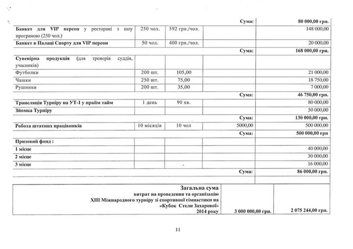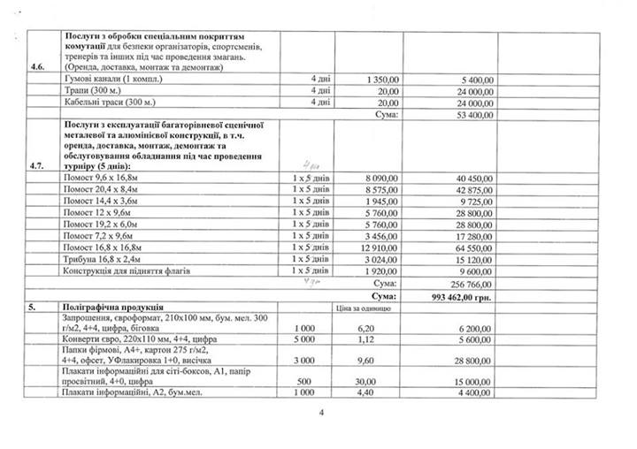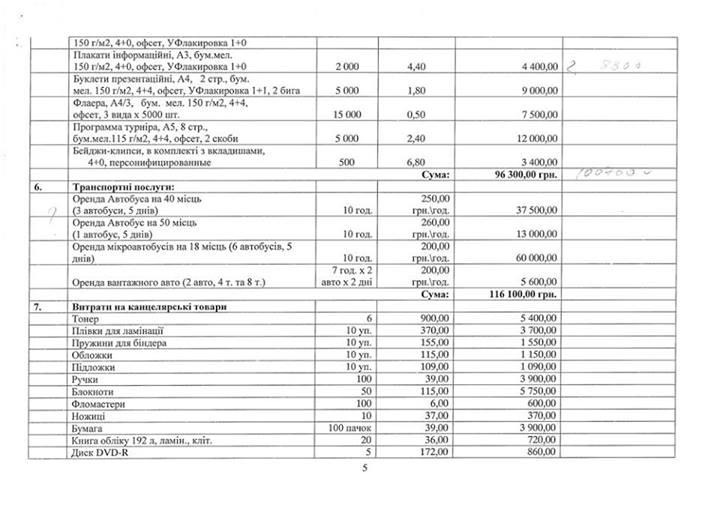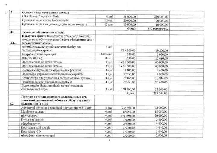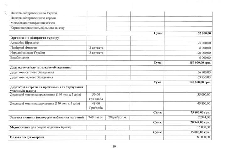 Также на страничке в Facebook «Мы и спорт в Украине» появилась смета планируемого турнира.
