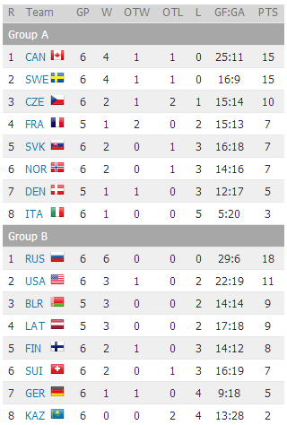 Канада добилась волевой победы в противостоянии со Швецией. Это была дуэль лидеров подгруппы. В начале второго периода европейцы целиком по делу заимели перевес в две шайбы, однако с этого и начался их конец, то бишь первое поражение на турнире. Родоначальники хоккея сравняли счет еще до второго перерыв. Классная игра на хороших скоростях в третьем периоде сильнейшего не выявила, а победную шайбу самая титулованная команда мира забросила в овертайме. Героем стал Эллис, который оказался последним звеном в скоростной контратаке.