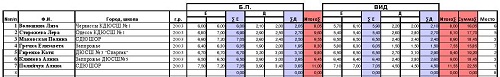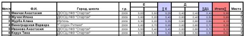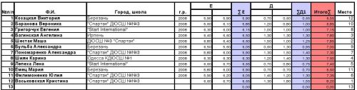На турнире было еще одно новшество - сразу после выступления потока гимнасток вывешивались оценки за выступление. Это очень хороший показатель объективности судейства, в таком случае ничего невозможно потасовать и подправить. Посмотреть результаты - очень удобно для родителей и детей, так они могли видят свои оценки и могут сделать выводы для дальнейшей работы.