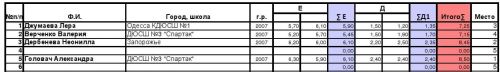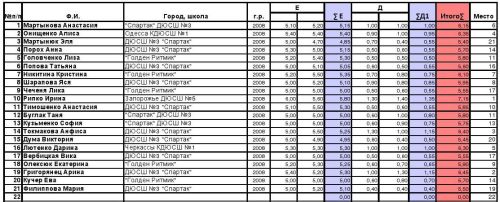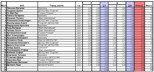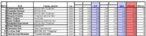 Лично мне понравились Маслова Оливия 2009 год, Токмакова Анфиса 2008, Шистак Маша 2008, Артеменко Кристина 2002, Твердохлеб София 2002, Цывинская Выселина 2001 год, Цыкаленко Валерия 2006 год, сильные все дети у Югай Илоны из Запорожья. Отмечу команду из Березани, у них сплочённый и добрый коллектив, они приехали с плакатами, болели друг за друга очень тепло!