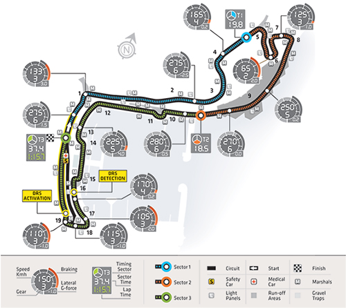 Про необгінність траси написано так багато, що зайвий раз згадувати про це не варто, проте варто відзначити, що як і минулого року зона дії DRS буде лише одна – на стартовому відрізку, адже на думку FIA використання DRS в тунелі занадто небезпечне, тож пробувати обігнати конкурентів за рахунок системи зниження лобового опору можна буде тільки перед Sainte Devote.