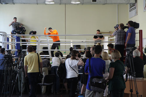 26 мая в Киеве Усик и его тренер Джеймс Али Башир провели открытую тренировку и рассказали о своей подготовке к 4-му поединку, организованному К2.