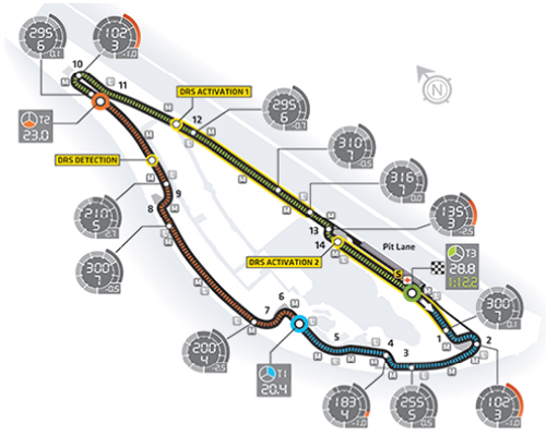 З сучасними електронними задніми гальмами спільну мову знайшли не всі пілоти, тож на трасі, яка є вкрай вимогливою саме до ювелірної точності при гальмуванні, можна очікувати чимало інцидентів – знову ж таки насамперед під час практик, коли пілоти експериментуватимуть та шукатимуть оптимальні для себе точки гальмування. Крім того система охолодження на коротких прямих просто не встигає охолодити гальма, тож командам доводиться приділяти їй особливу увагу.