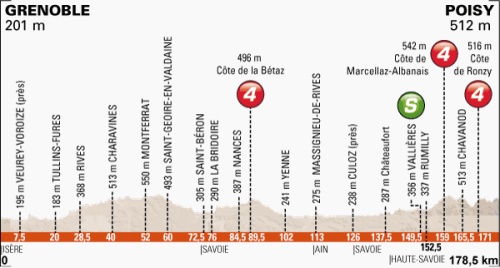 Гонщики стартуют с разделки на десять километров в Лионе, потом следует горный этап с финишем на Col du Beal, третий этап будет с холмами, но с финишем равнинным, где могут побороться спринтеры. Перед финишем четвертого этапа гонщиков ждет подъем Col de Manse, пятый и шестой этапы будут очень холмистыми, а в седьмой день гонщиков ждет покорение Finaut-Emosson, закончится многодневка этапом с финишем в Куршевеле.