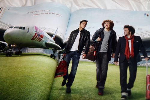 Про те, наскільки важлива ця гра для Бразилії ми чули багато і прибуття до Сан-Паулу лише підтверджує статус мегазірок. Кака і Неймар, Тьягу Сільва і Марсело – всі вони запрошують Вас користуватися тими чи іншими бразильськими авіалініями. Назви авіакомпаній теж відповідні: найбільш популярні - це «Гол» і «Там» (тут лише співзвучність з українською мовою). Іншими словами: «гол там – у тих воротах».