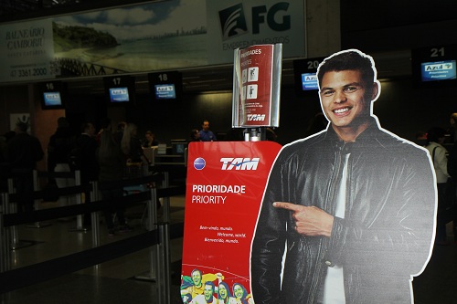 Гаразд, завжди треба шукати у кожній справі позитив. Є чимало часу, отже можна без поспіху «розкадрувати» трьох гравців збірної Бразилії Марсело, Давіда Луїза і Тьяго Сільву, які дружною трійкою запрошують на «check-in» пасажирів авіа-компанії «Там» (про це я вже вам розповідав, але сфотографувати раніше не було часу, адже все - на бігу). Сфотографував паперові статуї футболістів, зауважив, що у компактному аеропорту Куритиби на дистанції 30 метрів одразу три магазинчики сувенірів збірної Бразилії і офіційний «фан-шоп» Кубка світу. Отож, продовжуємо знімати – час же є. Продавці дуже люб’язні, запрошують подивитися: хочете зробити світлини – будь ласка. Дістався офіційного бутика – все фільмую, занотовую ціни, навіть кілька магнітів собі вибрав. Все, закінчив фотографування, думаю, як вбити годину, а може затримка вийде й більшою, адже працівник авіа-компанії сказав «мінімум на годину». Кидаю погляд на інформаційне табло і зіниці мої враз розширюються. Напис «Ultima chamada» красномовно свідчить, що на мій рейс уже оголосили останнє запрошення! Підбігаю до свого знайомого на реєстраційній стійці, кажу: «Як же так?», а він мені дещо стурбовано, але виховано: «Вибачте, сер, у зв’язку із ситуацією, що склалася, прийнято рішення перевести на рейс до Сан-Паулу інший борт, оскільки невідомо, коли літак вилетить з Порту-Алегрі».