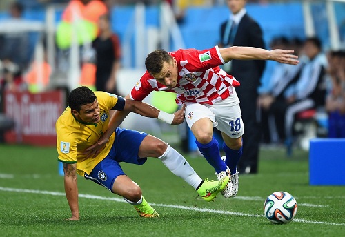 И верно, несмотря на давление чужих трибун, хорваты отлично начали матч. Подопечные Ковача очень быстро освоились на арене и уже на 6-й минуте имели отличный момент – Перишич подал с правого фланга, а Ивица Олич ударом головой совсем немного промахнулся мимо верхнего угла ворот опытнейшего Жулио Сезара.