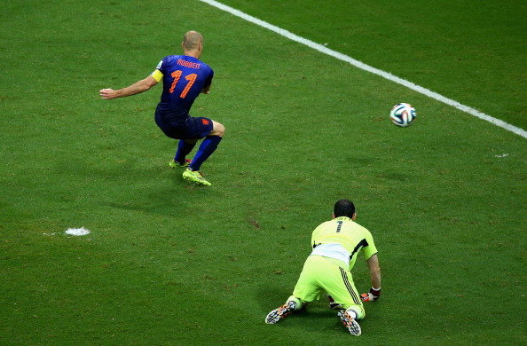 После третьего гола запахло разгромами, которые в прошлом году учинила «Барселоне» «Бавария» с тем же, кстати, Арьеном Роббеном. Испанцы провели одну неплохую атаку, которую завершил голом из офсайда Сильва. А дальше снова на поле была только Голландия. Ван Перси подкараулил ошибку Касильяса и минимальным количеством шагов доставил похищенный мяч в ворота. Затем Роббену снова дали шанс поиздеваться над испанским вратарем и защитой, Арьен легко убежал от Рамоса, потом опять в штрафной были он и мяч, а всем остальным оставалось смотреть, ну или отчаянно пластаться, как Касильясу. Но шансов на спасение не было. И на крупных планах, и на общих, игровых, на лицах испанцев читался шок.