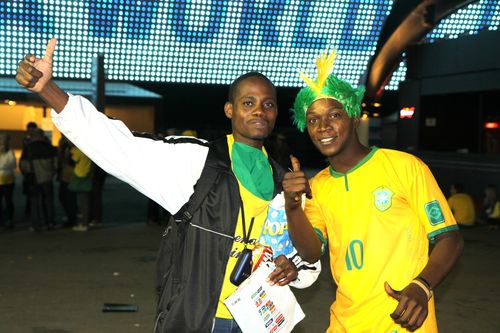 А от, щоби придбати офіційну символіку мундіалю на «Арені Амазонас», одному з лічених українських вболівальників Олегу Собуцькому, який, до речі, гідно представив українські кольори на чемпіонаті світу (у футболці збірної і з шарфиком), довелося «намотати» два кола навколо стадіону. При цьому водила Олега волонтерка. І тут є привід сказати про те, що у нас на Євро-2012 усе було організовано значно чіткіше: і волонтери надавали конкретну і потрібну інформацію англійською мовою, і сувенірів було незрівнянно більше. У Бразилії волонтери розмовляють англійською через одного. Щоправда, намагаються знайти з-поміж себе когось англомовного, але усе це триває дуже довго. Як ви уже могли зрозуміти з моїх репортажів, поспішати тут не прийнято.