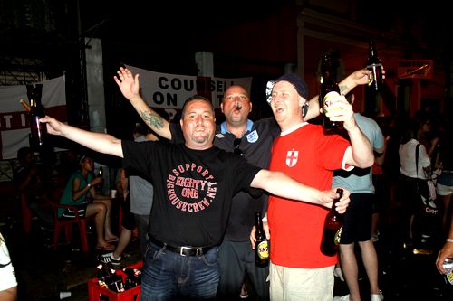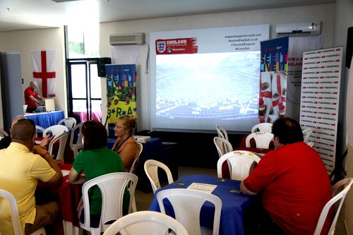 У готелі розташувалося дуже багато британських фанів. І при цьому не просто група, а офіційний клуб уболівальників збірної Англії. Орендувавши конференц-зал на першому поверсі, представники англійської федерації футболу обвішали стіни фірмовими банерами із зображеннями символів англійської національної команди – Стівена Джерарда, Уейна Руні та Джо Харта, повішали екрани і демонстрували матчі чемпіонату світу. Чужим – зась, вхід – лише для офіційно зареєстрованих членів. Дивилися три матчі Кубка світу у переддень власного протистояння з Італією.